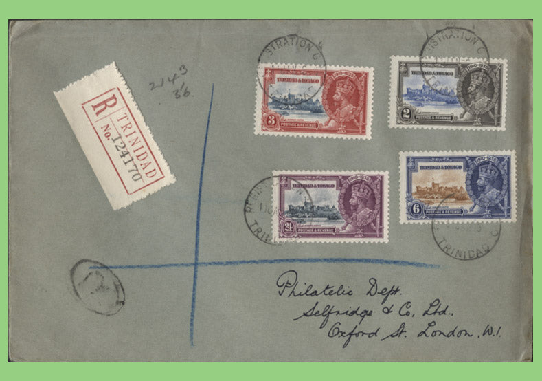 Trinidad & Tobago 1936 KGV Silver Jubilee set on registered Cover