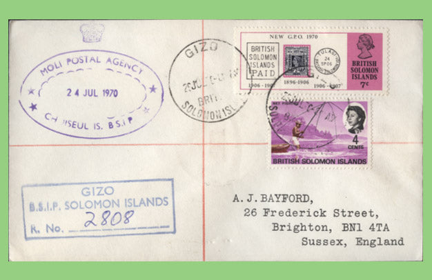 British Solomon Islands 1970 Gizo registered cover with Postal Agency cachet