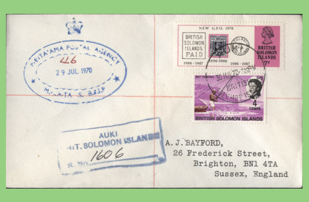 British Solomon Islands 1970 Auki registered cover with Postal Agency cachet, Mbita'ama Postal Agency
