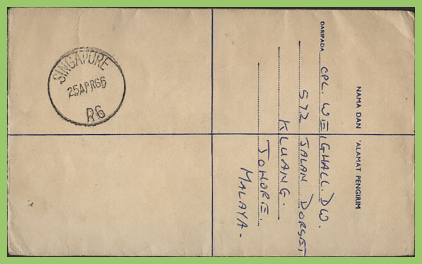 Malaya-Johor 1966 uprated registered 'Kluang' cover to England