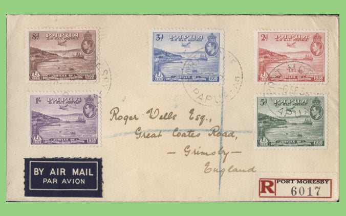 Papua 1938 KGVI set on registered Port Moresby First Day Cover