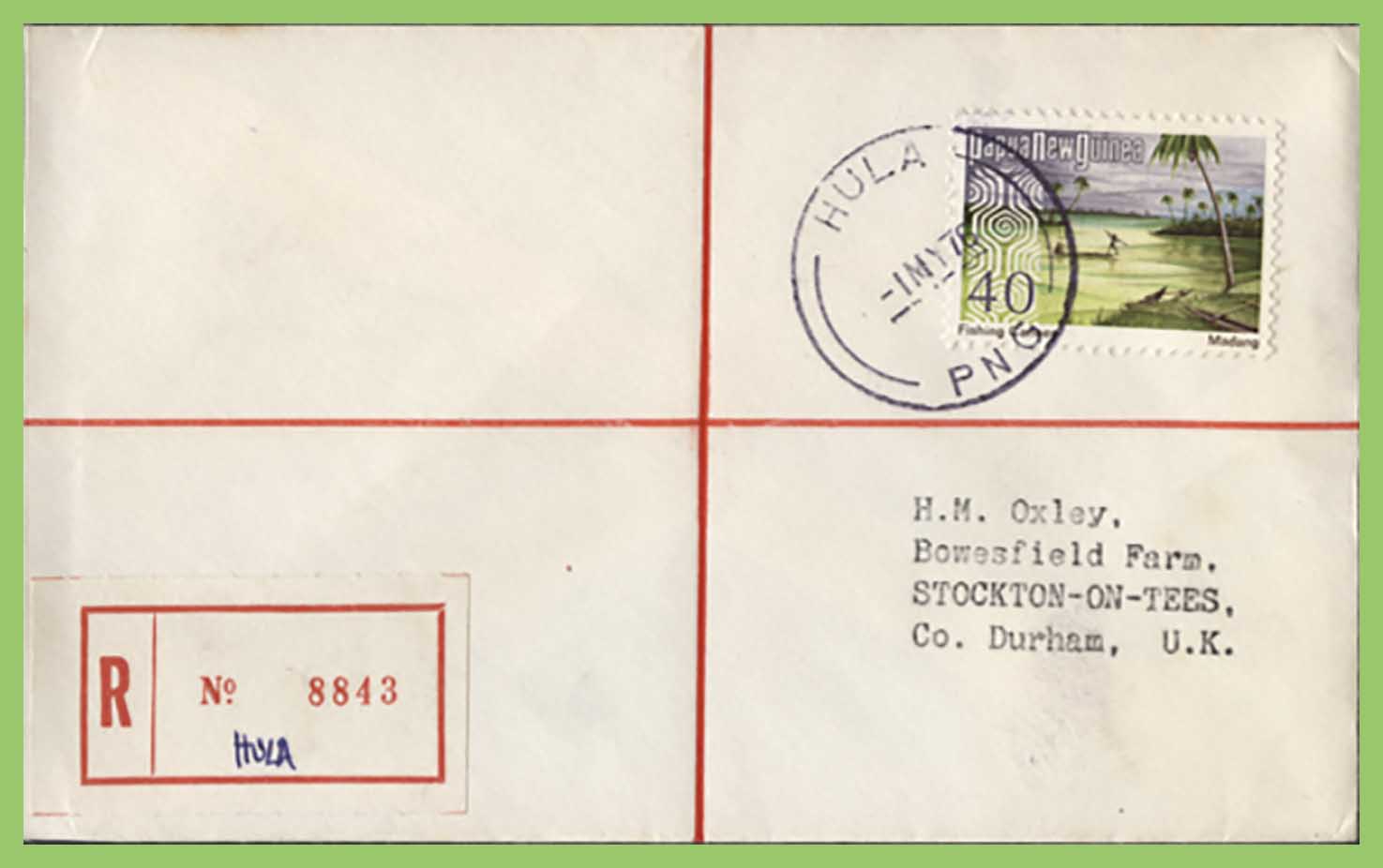 Papua New Guinea 1976 40c on registered 'Hula' cover to England