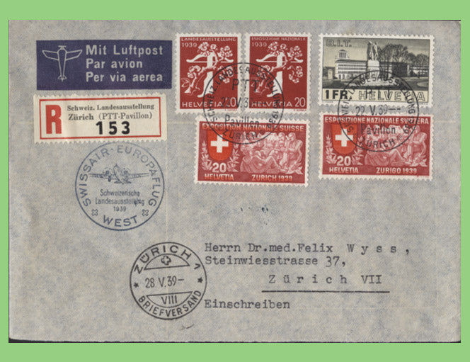 Switzerland 1939 Exhibition registered flight cover with cachet