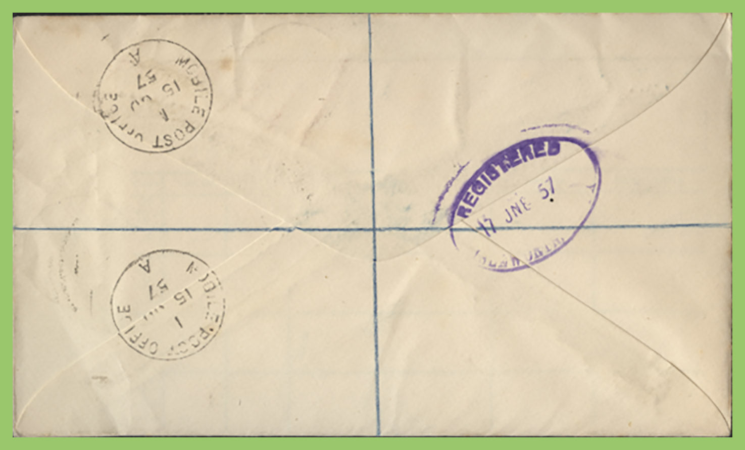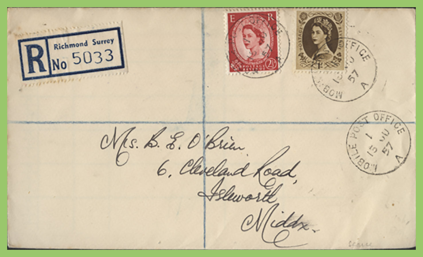 G.B. 1957 Richmond registered cover with neat Mobile Post Office cancels (Richmoind Horse Show)