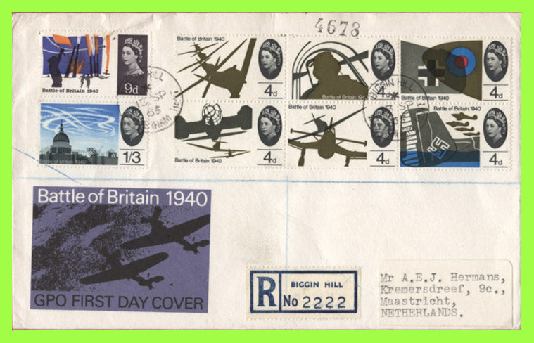 G.B. 1965 Battle of Britain Ord on registered First Day Cover, Biggin Hill, single ring cds